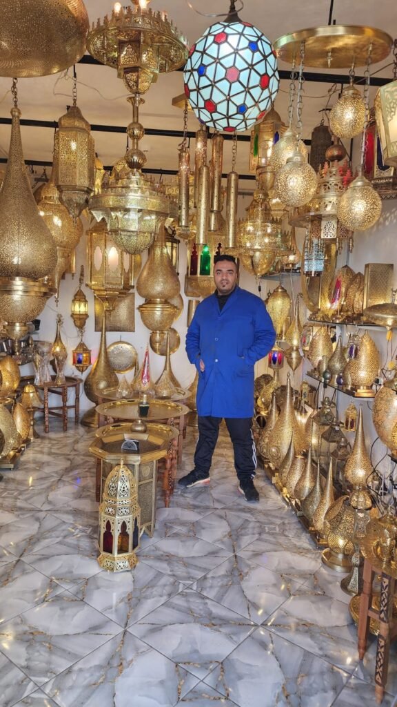 In Fez, Morocco, artisans create copper lanterns by hand using traditional metalworking techniques. They start by cutting copper sheets into precise shapes for the body panels. Each panel is then pierced and engraved with geometric or floral patterns using chisels and small hammers. The pieces are carefully shaped and soldered together to form the lantern’s structure. After assembly, the lantern is polished to achieve its warm copper shine. The final product reflects centuries of craftsmanship and the artistic heritage of Fez.